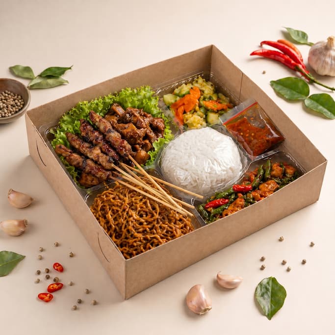 Menu Daging: Sate, Rendang, Lapis Daging, Lada Hitam • Menu Tulangan: Gule, Krengseng, Tongseng, Tengkleng, Asem-Asem • Free Krengseng Kulit